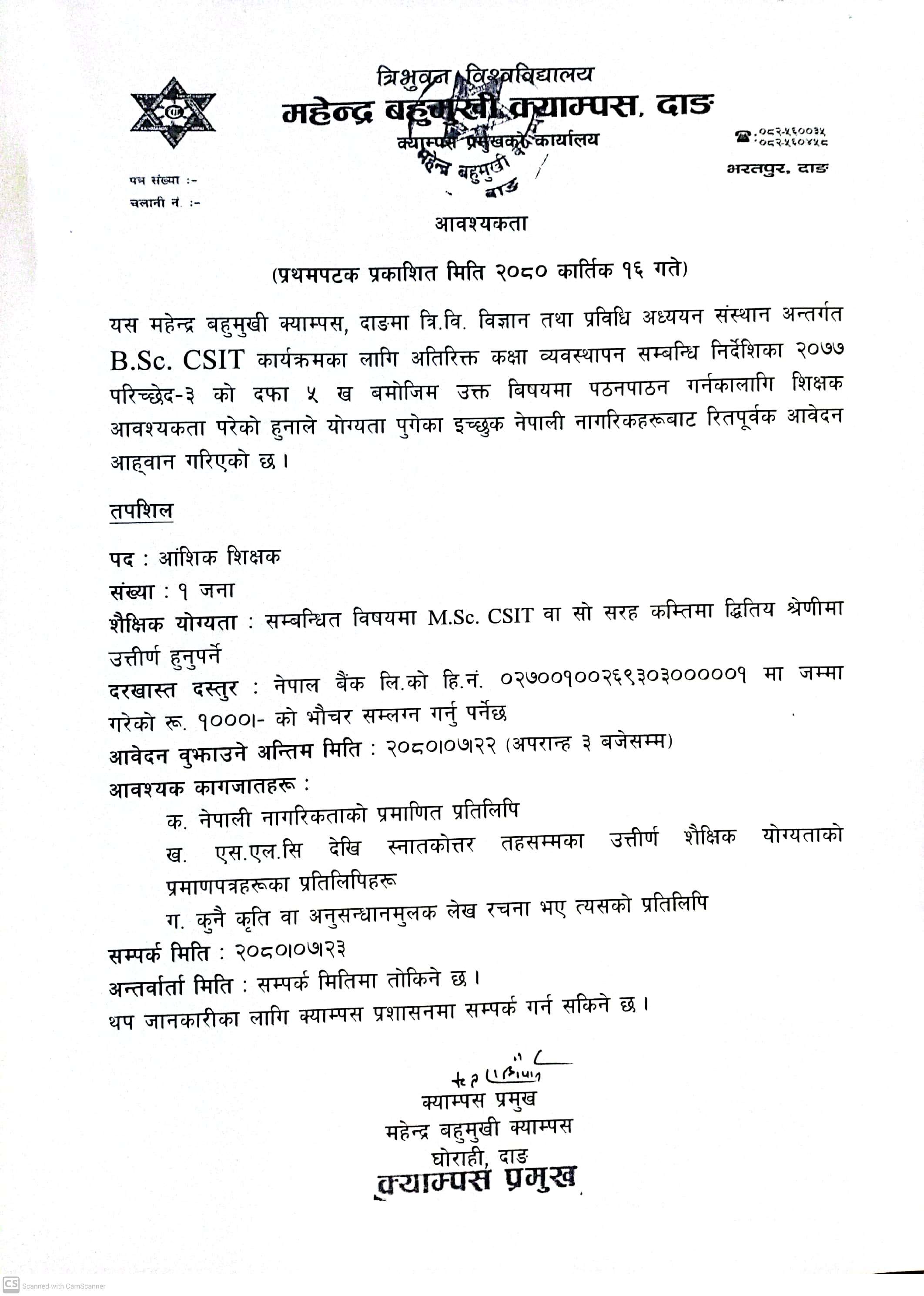B.Sc.CSIT मा भर्ना सम्बन्धी सूचना