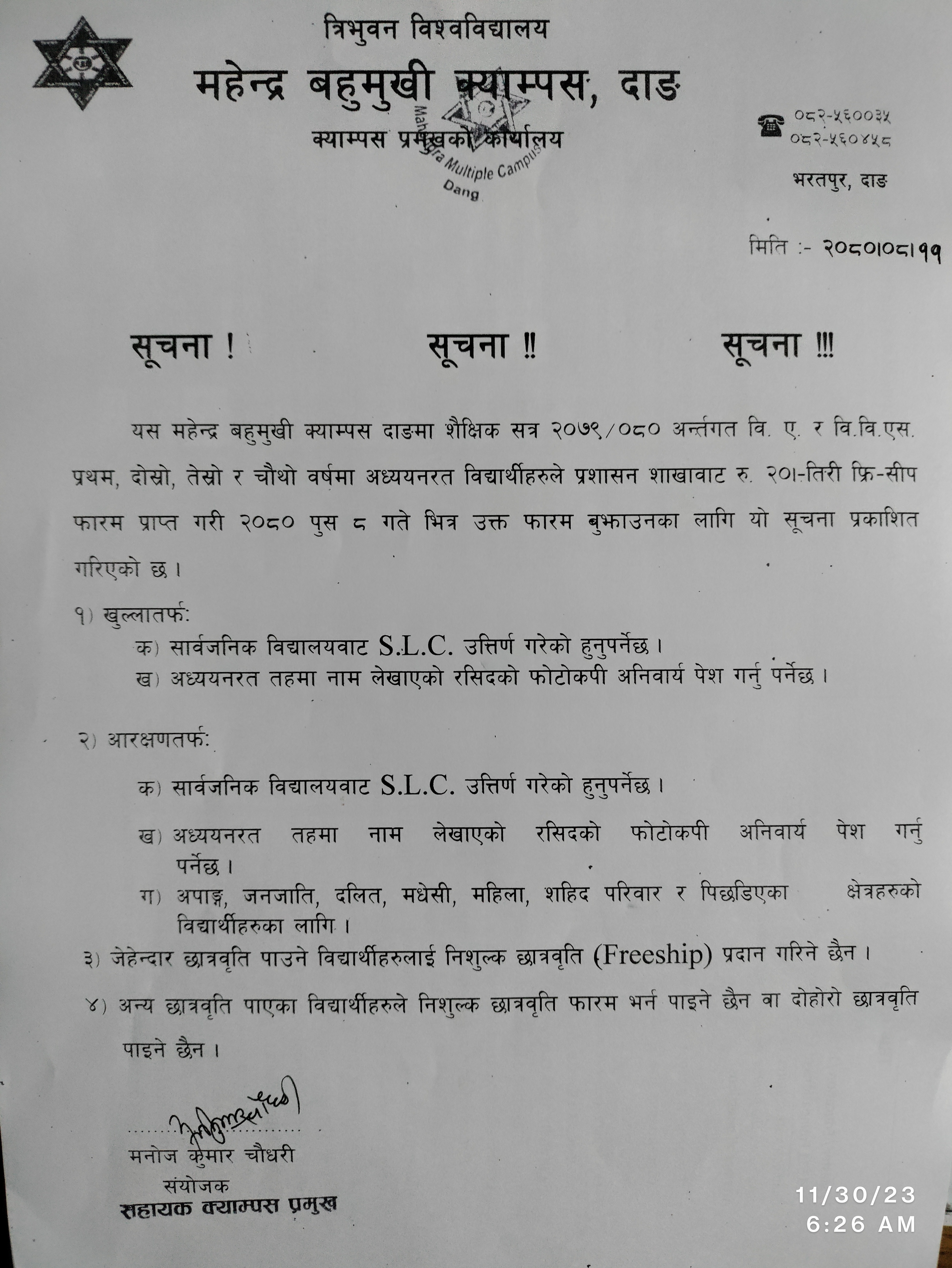 B.Sc.CSIT मा भर्ना सम्बन्धी सूचना