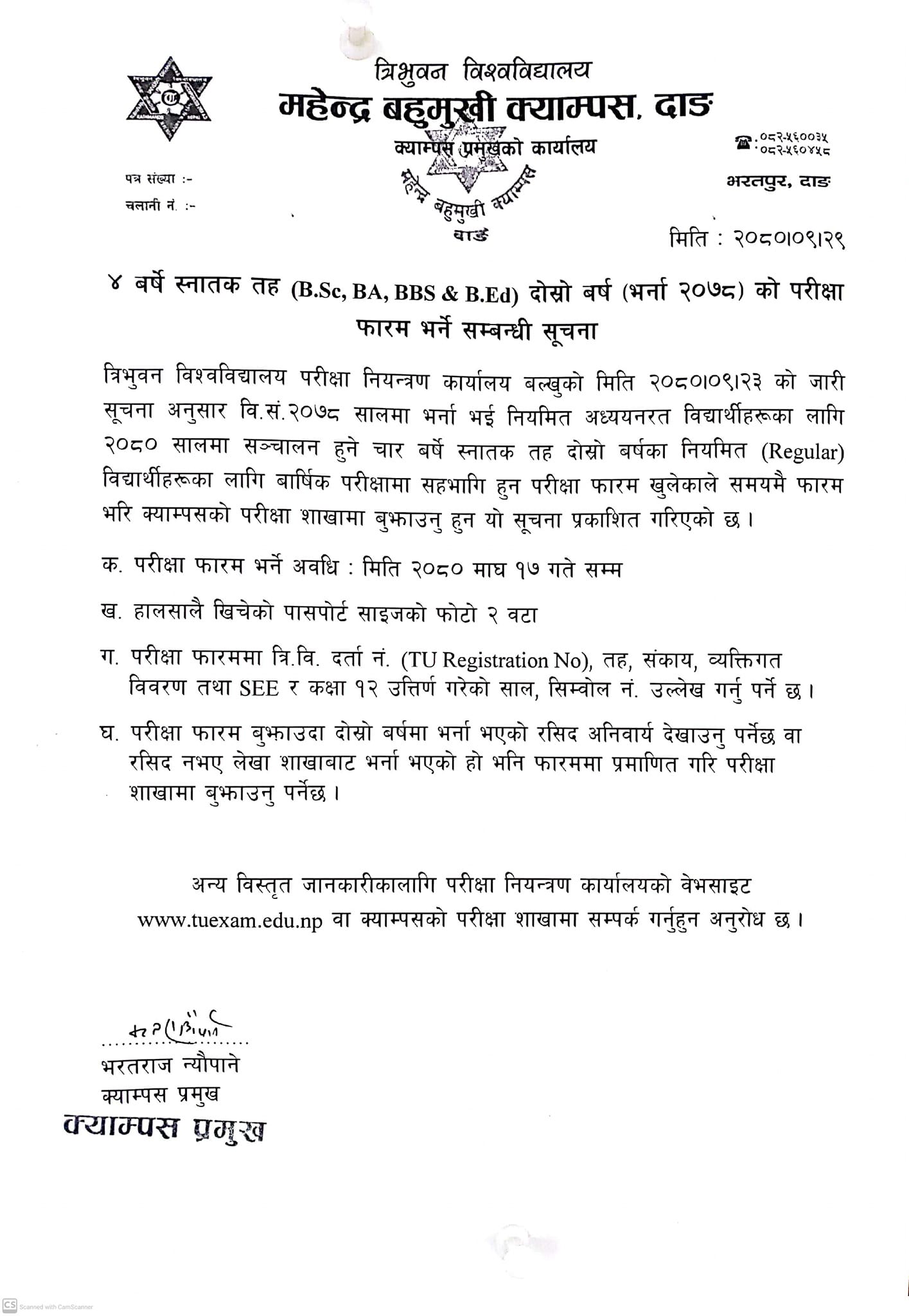 Bachelor 2nd Year Exam Form Filling Notice