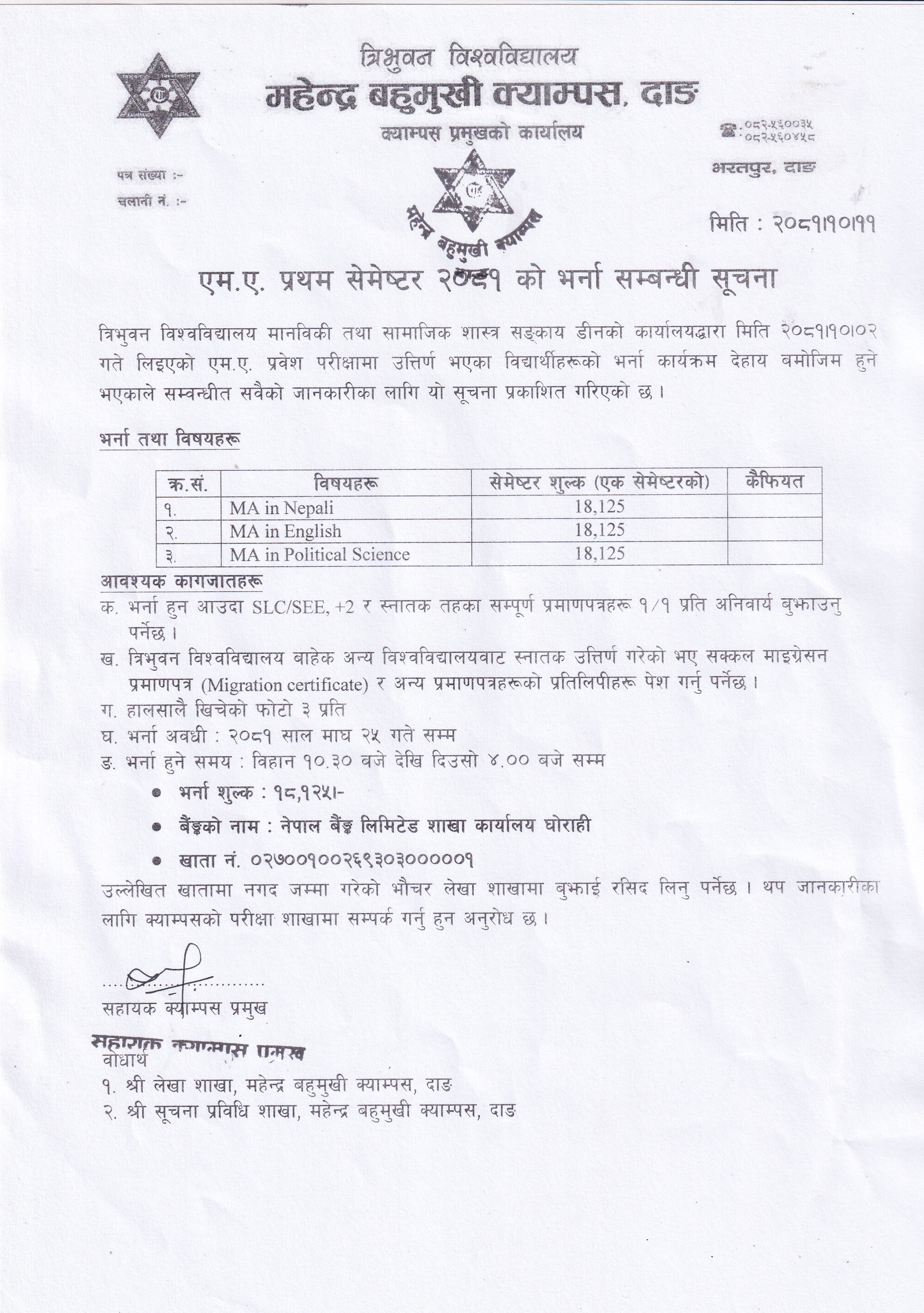 Admission Open in MA Batch 2081 in English, Nepali and Political Science